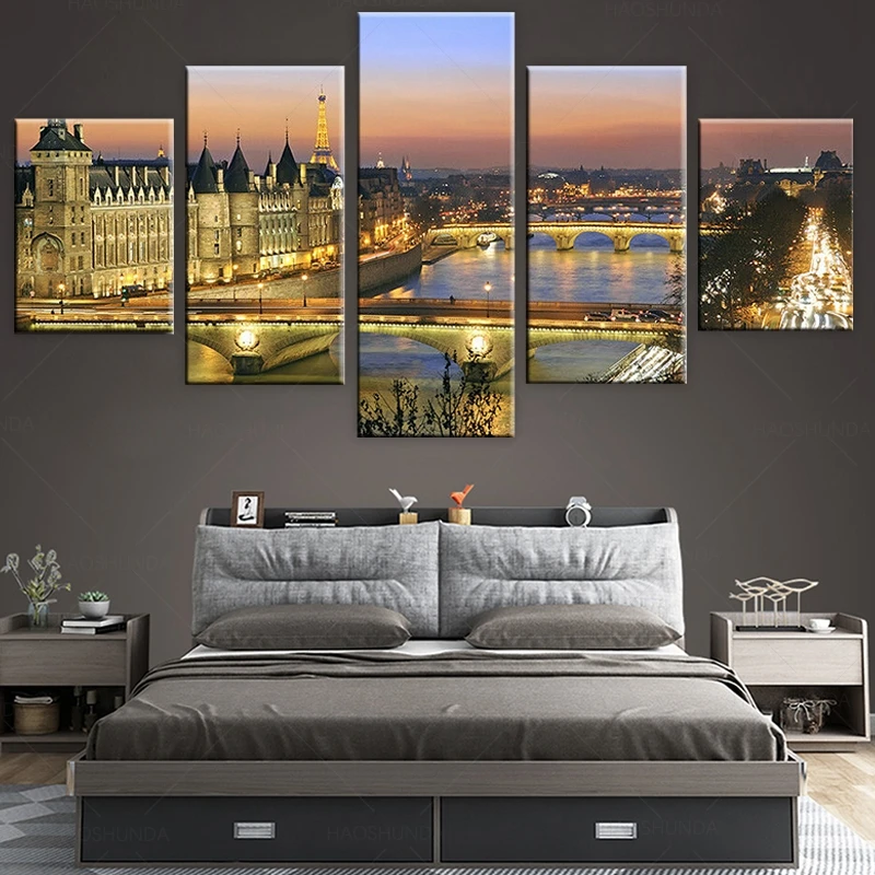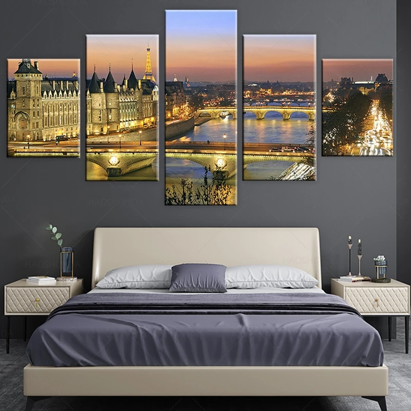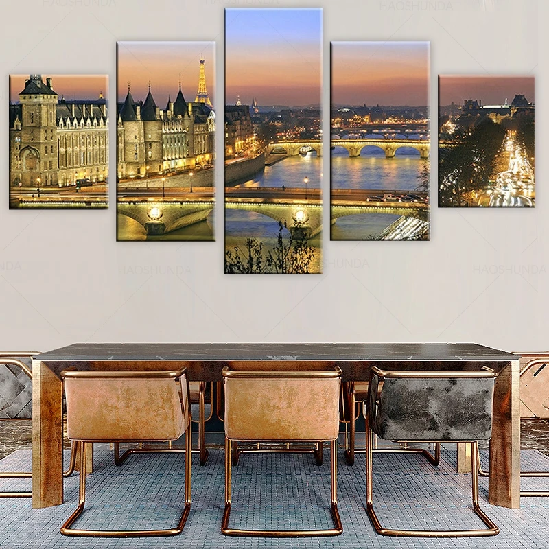 Риверсайд мост Старый город 5 шт. холст картина плакат печать настенное Искусство Холст Картина Настенный декор для гостиной в рамке