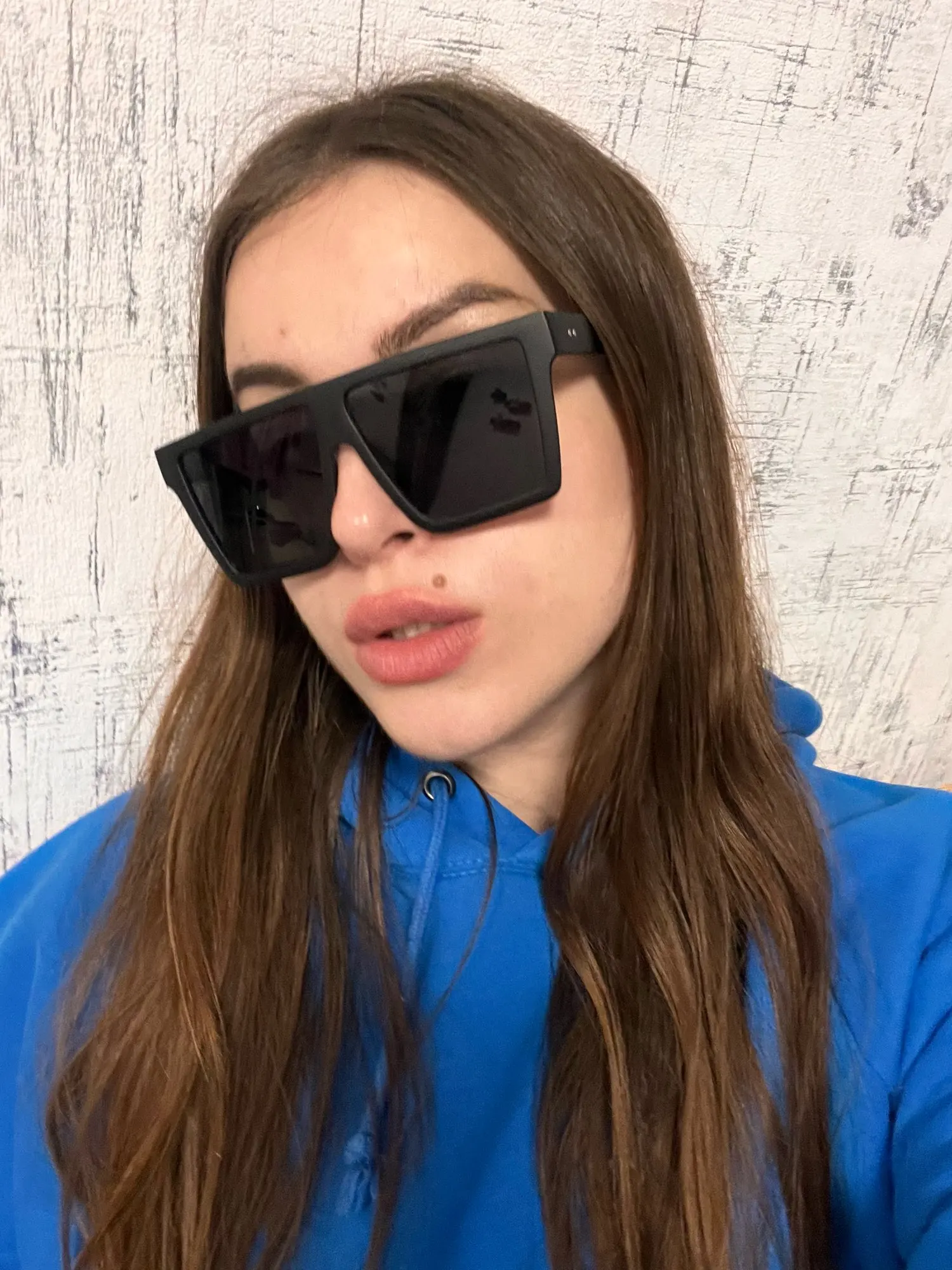 Солнцезащитные очки женские, квадратные, черные, с зеркальными линзами