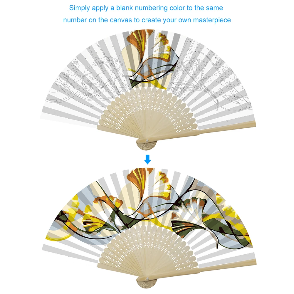 Ручная картина маслом, лист гинкго, Складной вентилятор по номерам, сделай сам, Крафт, украшение для дома, подарок, цифровой вентилятор для картины маслом