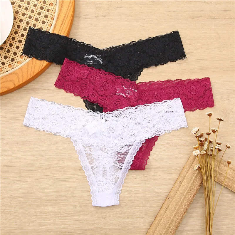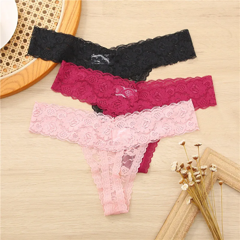 FINETOO Кружевные стринги с низкой посадкой, женские сексуальные трусики-стринги с цветочным рисунком, женские трусы M-XL с Т-образной спинкой, кружевное нижнее белье для девочек, нижнее белье 2021 г.
