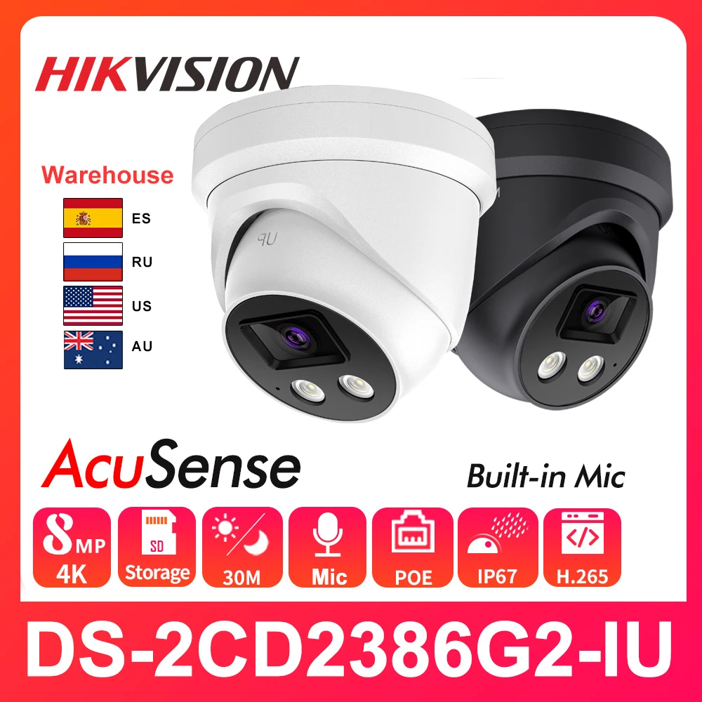 Оригинальная IP-камера Hikvision, 8 Мп, DarkFighter, 4K, купольная IP-камера POE, SD-карта, H.265 + IP67 DS-2CD2386G2-I(U), автомобиль AcuSense IPC