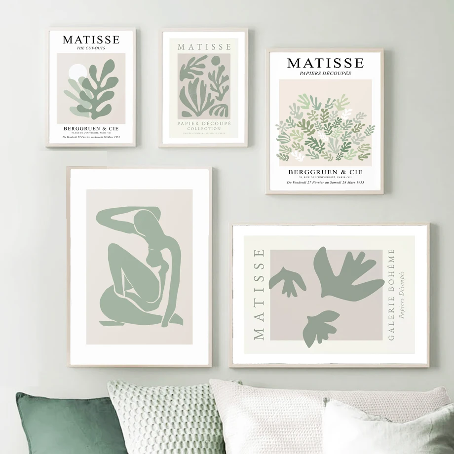 Картина на холсте, абстрактная, Матисса, для женщин, для танцев, зеленые листья, скандинавские постеры и принты, Декор, картинки для гостиной
