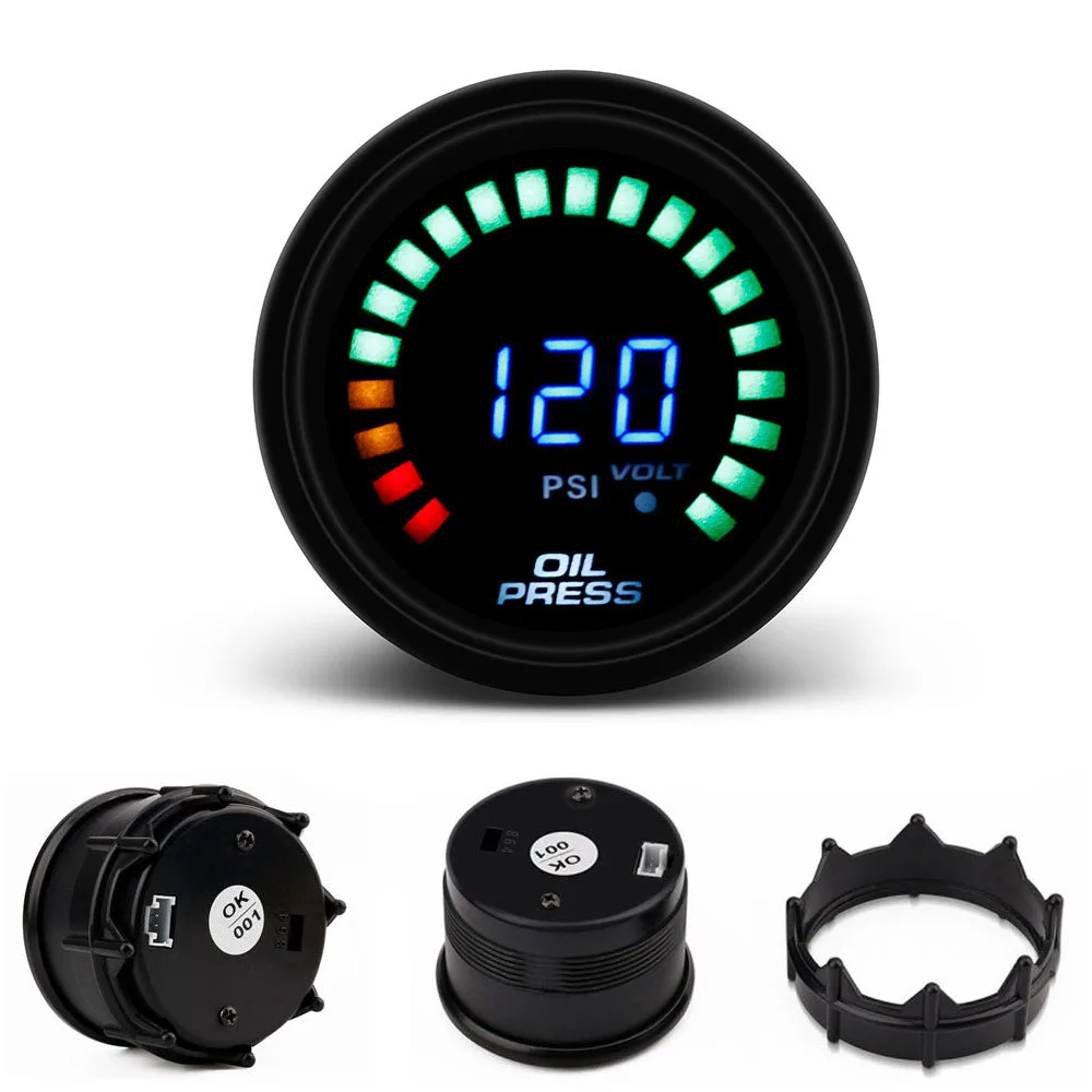 Автомобильный цифровой Копченый Масляный Пресс, измеритель температуры и давления, с датчиком, диаметр 52 мм, 20 светодисветодиодный на квадратный дюйм