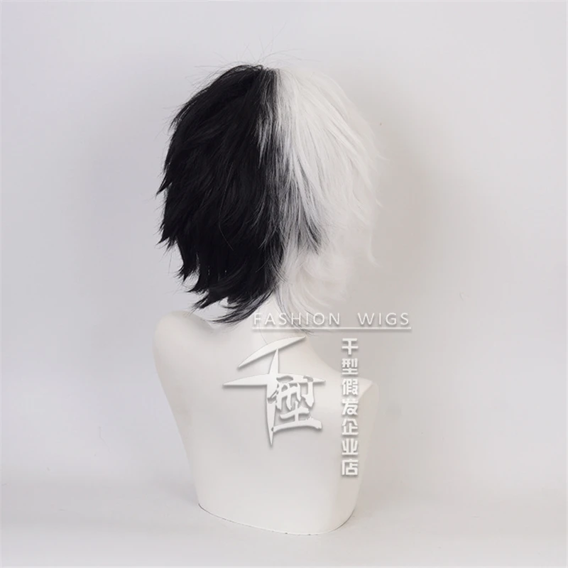 Парик из искусственных волос в стиле аниме данганронпа, термостойкие синтетические короткие волосы белого и черного цвета с шапочкой для Хэллоуина