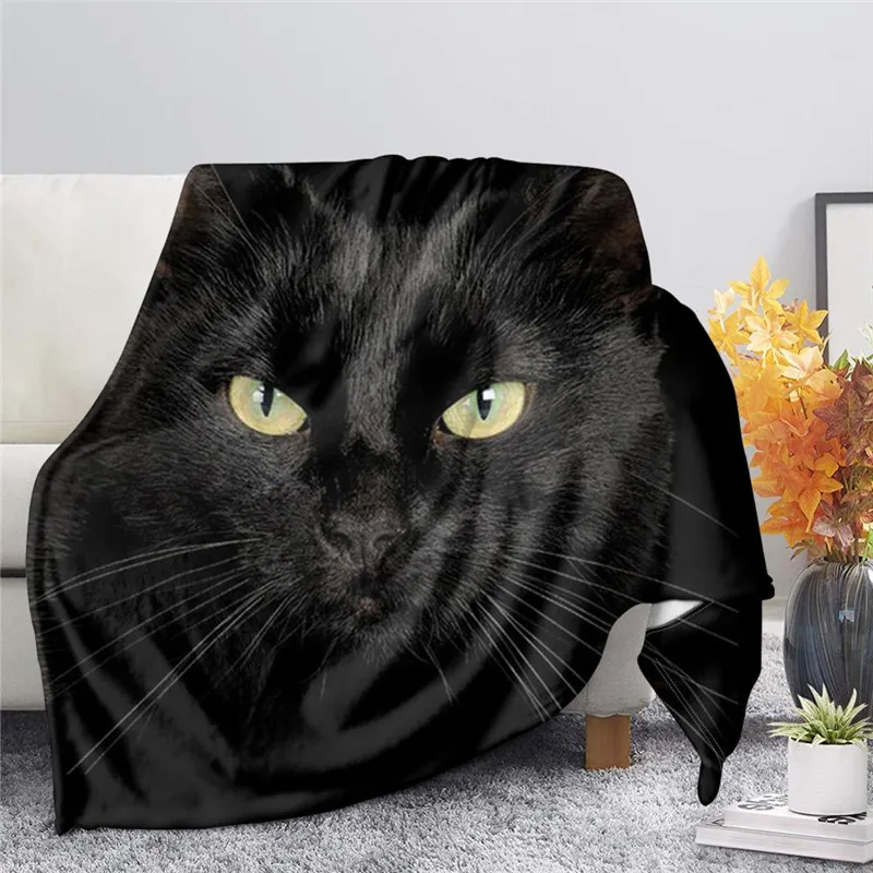 Бархатное плюшевое Флисовое одеяло с 3D принтом черной кошки, покры...