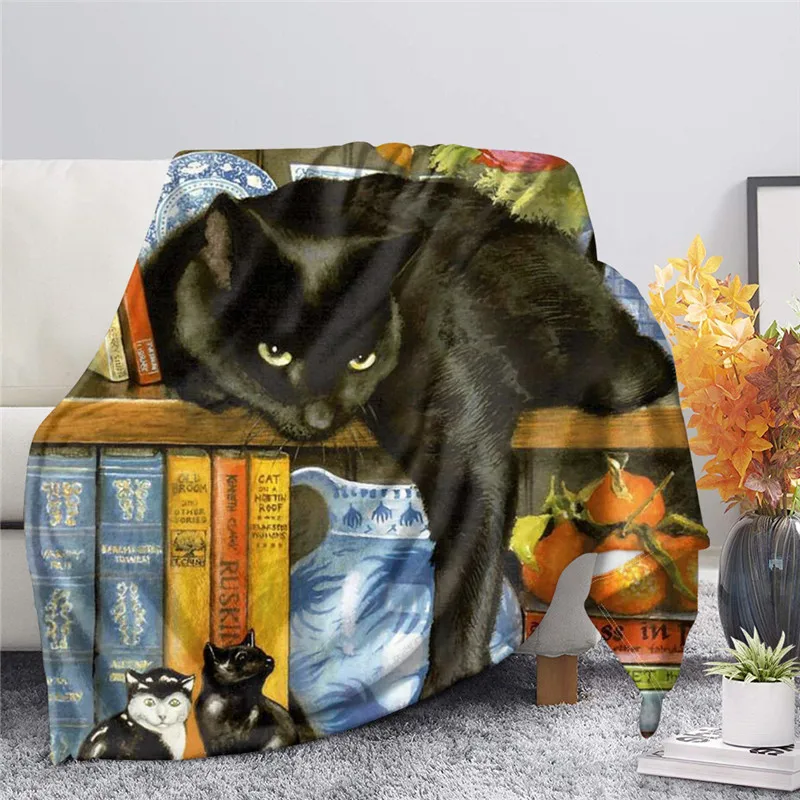 Плюшевое одеяло с принтом черной кошки Upetstory, очень мягкое Флан...