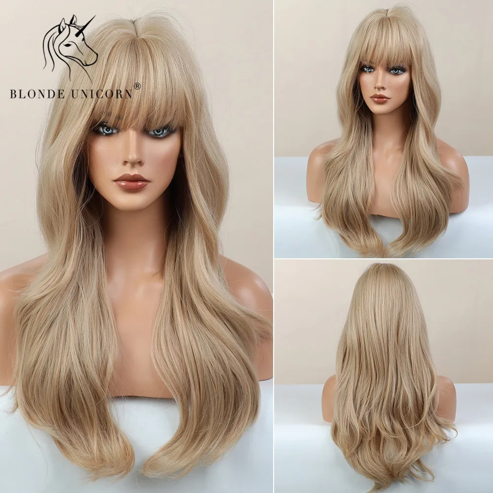 Синтетические парики средней длины блонд единорог с челкой парик из...