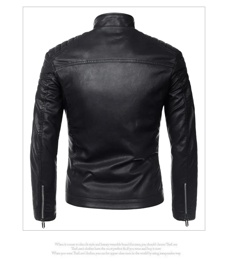 Мужская приталенная куртка из искусственной кожи, черная ветрозащитная винтажная кожаная куртка на молнии с воротником-стойкой, Осень-зима 2021