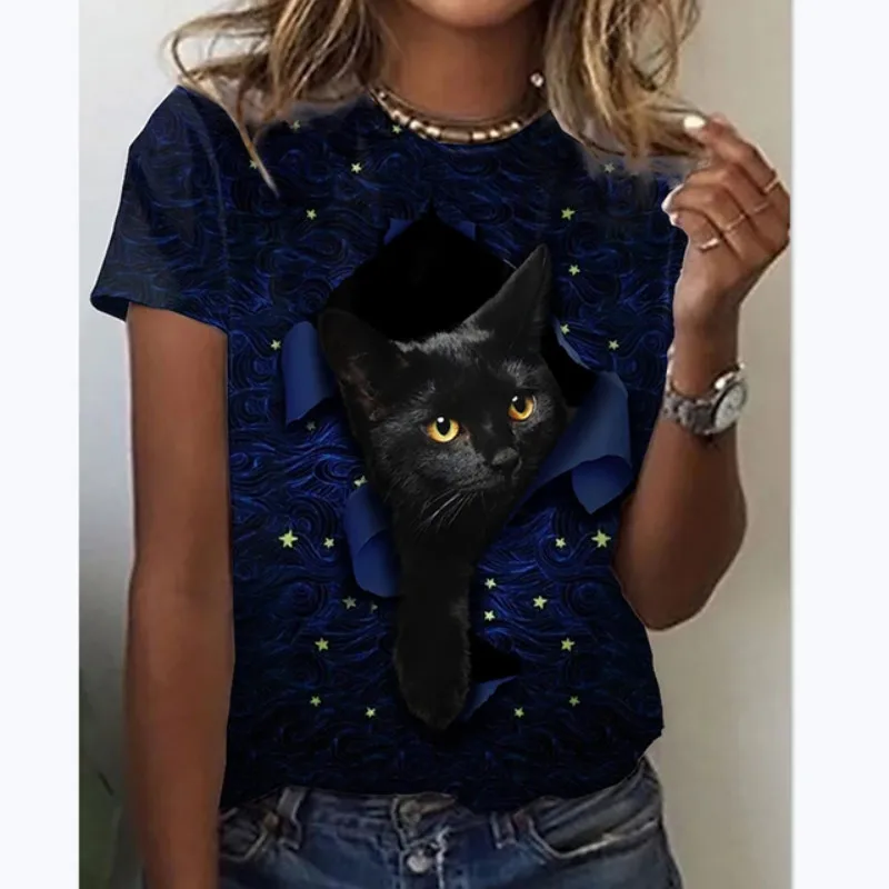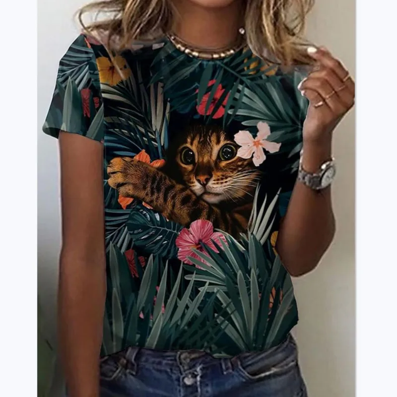 Футболка женская летняя с 3D-принтом животных, леса, кота и круглым вырезом
