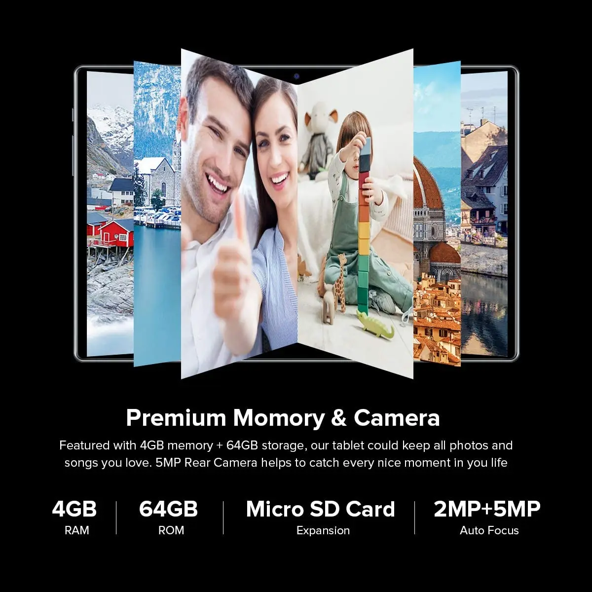 Планшет на Android 10, восемь ядер, экран 10,1 дюйма, 4 Гб + 64 ГБ