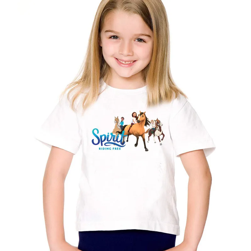 Лидер продаж, летняя детская футболка Lucky Mustang Spirit Horse, мультяшная футболка для девочек, забавная одежда для маленьких мальчиков, детские топы, HKP5457