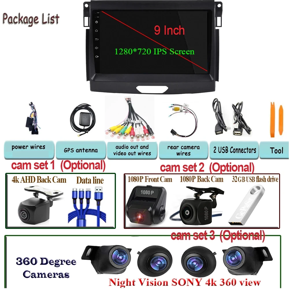 Автомобильный стерео Мультимедийный проигрыватель 360, камера для H...