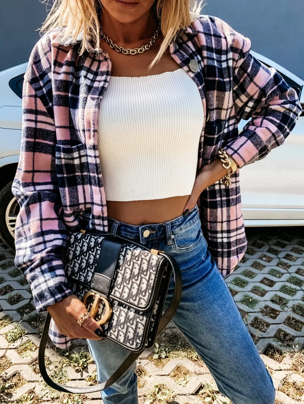 Женская клетчатая куртка с длинным рукавом, свободное винтажное пал...