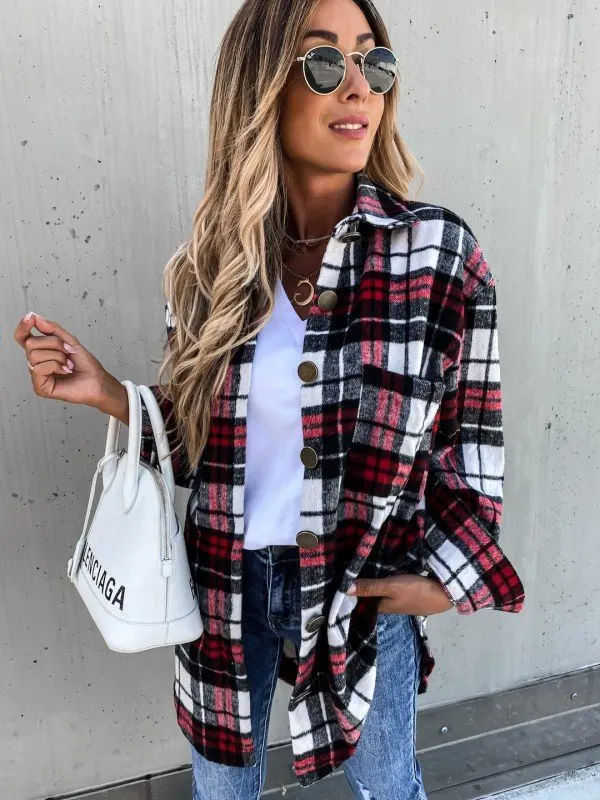 Женское пальто 2021, модный Женский Повседневный Кардиган в клетку ...