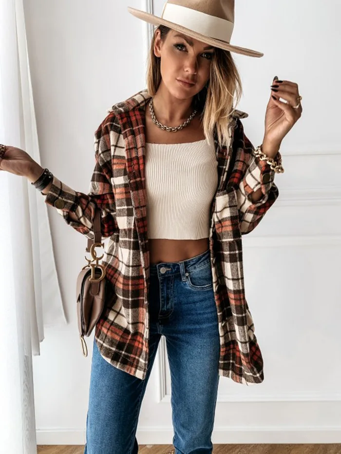 Женская клетчатая рубашка в европейском и американском стиле, осень...