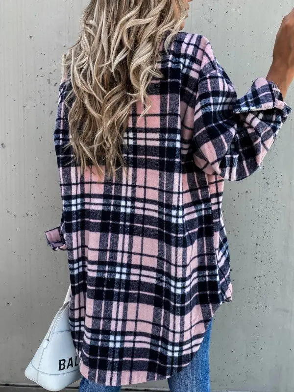 Женская клетчатая куртка с длинными рукавами на осень-зиму пальто с...
