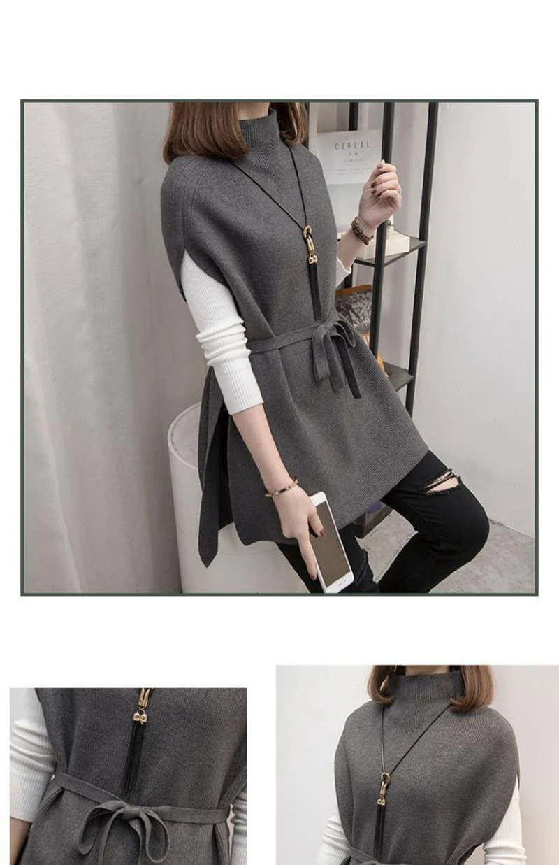 Женский Однотонный свитер-жилет с высоким воротником и V-образным вырезом