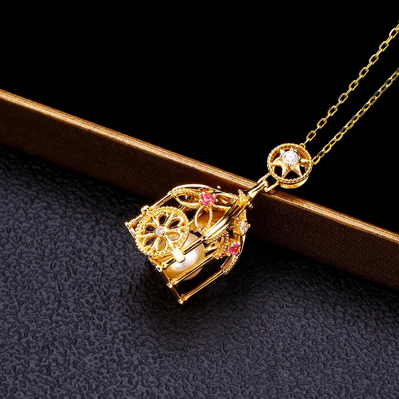 Ожерелье LAMOON женское из натурального пресноводного жемчуга, винтажный кулон в виде клетки с полыми звездами, серебро 925 пробы, позолота карат, подарок на день рождения