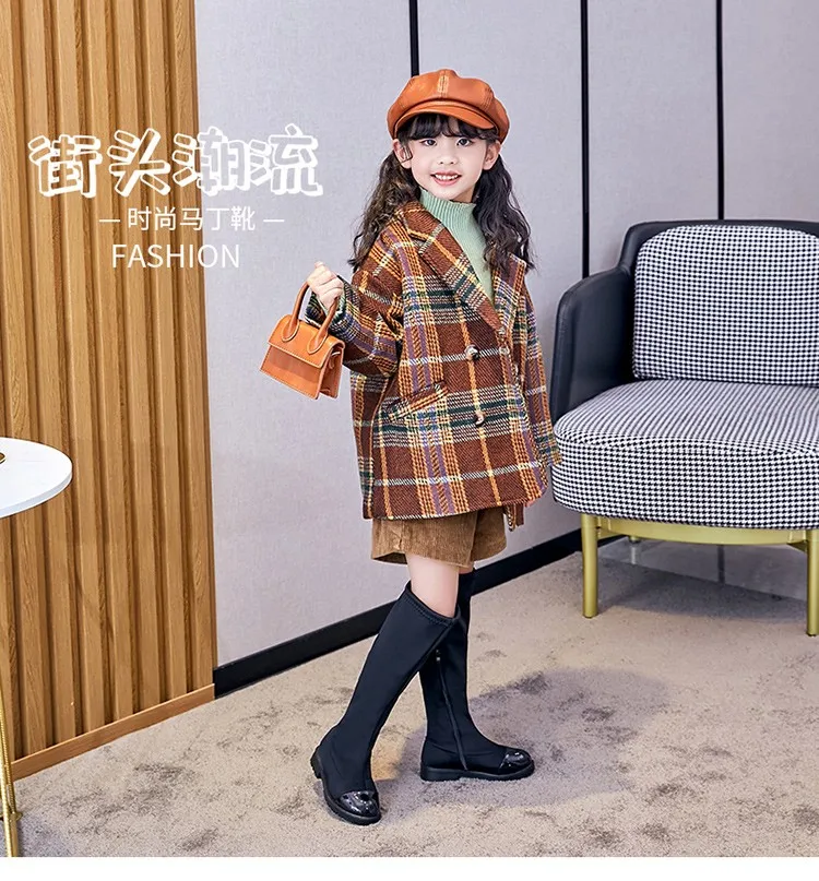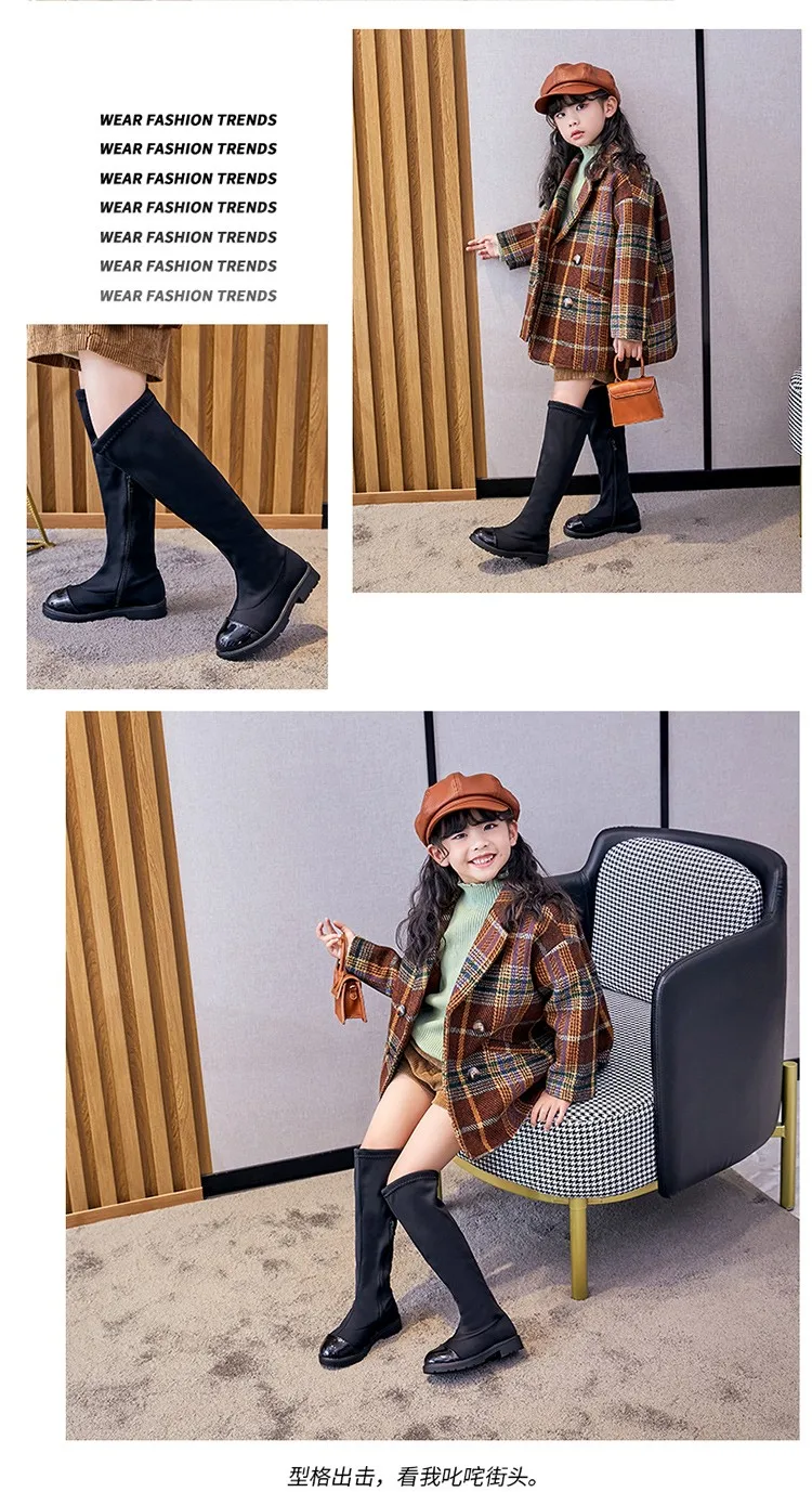 Осенне-зимние детские длинные сапоги для девочек модные классные резиновые сапоги до колена Детские мотоциклетные сапоги мартинсы для девочек