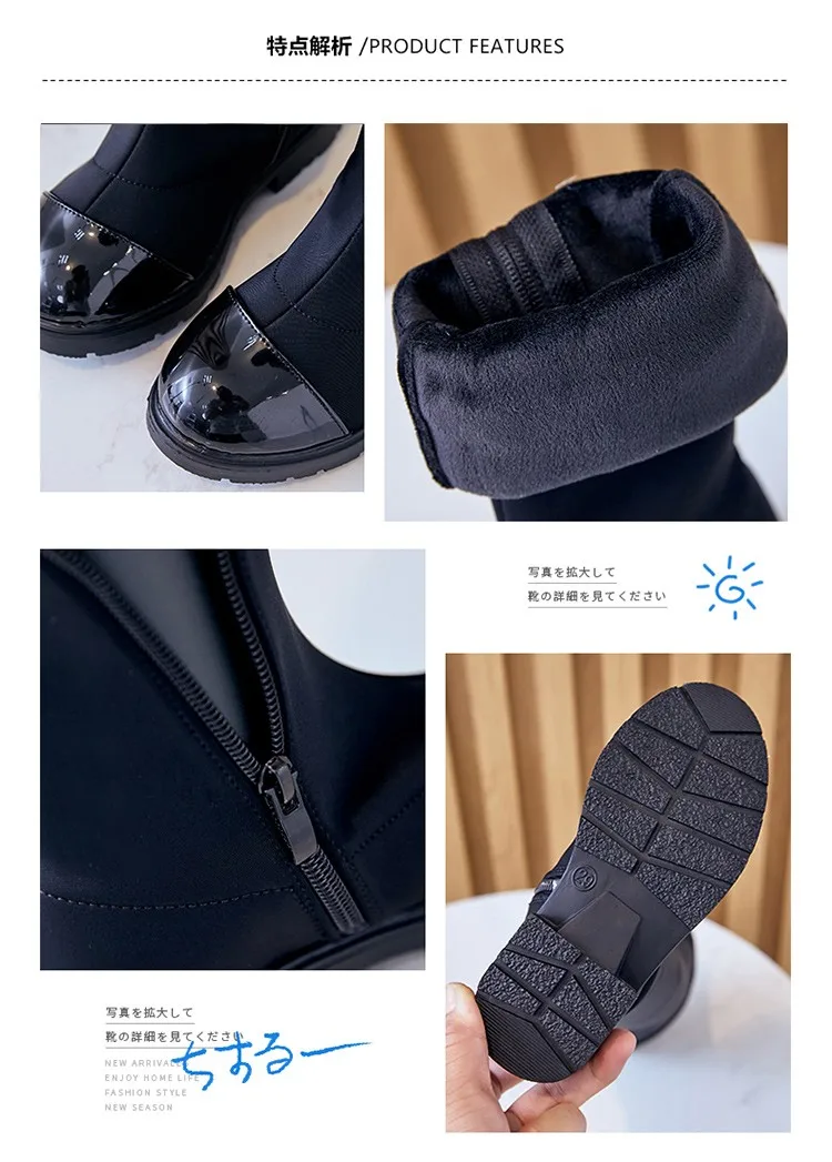 Модные сапоги для девочек, теплая плотная осенне-зимняя детская обу...