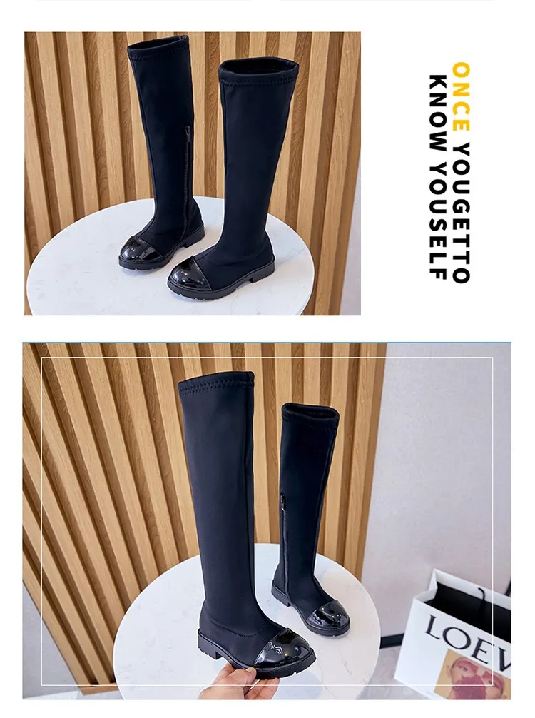 Новинка, детские высокие сапоги из эластичной ткани, обувь принцесс...