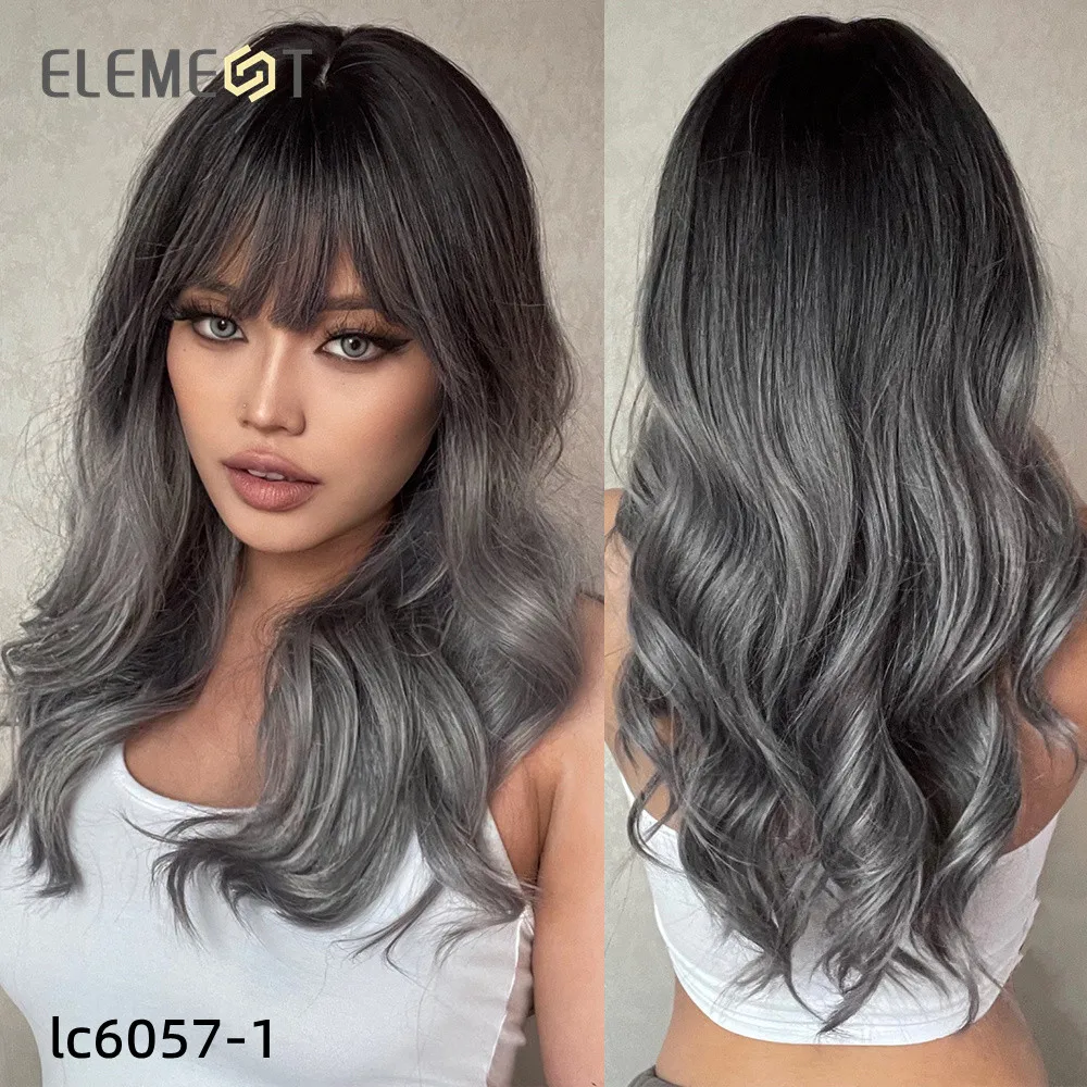 Парик Element темно-коричневый с эффектом омбре светильник-коричневые длинные волнистые парики с челкой для женщин синтетические волосы натуральные праздничные термостойкие