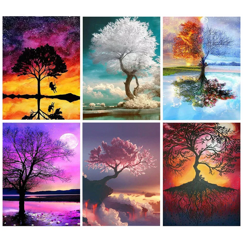 Полноразмерная 5D алмазная живопись сделай сам AB, алмазная вышивка с цветным деревом, пейзажем, пейзаж, вышивка крестиком стразы, мозаика