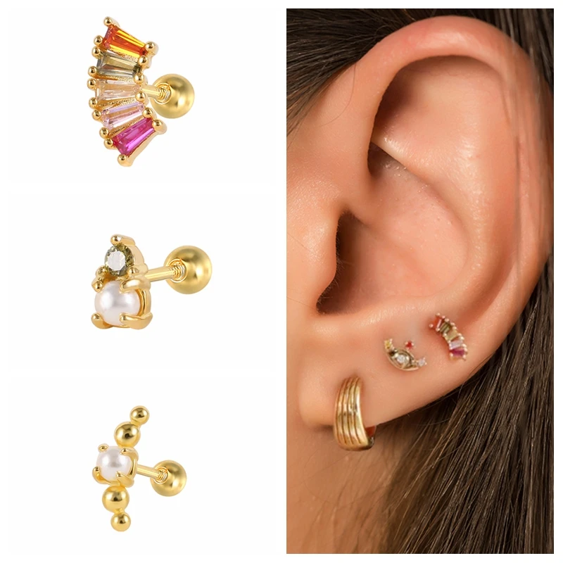 CANNER серьги из серебра 925 для женщин цветной CZ перламутровый Хрящ Пирсинг Серьги plata 925 трендовые продукты 2021 Aros