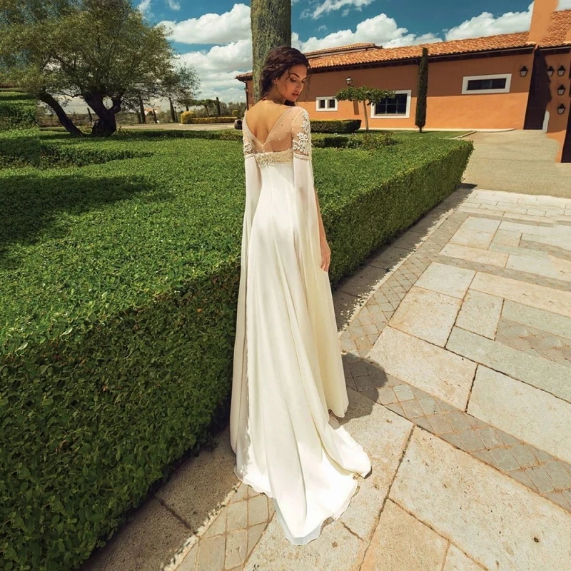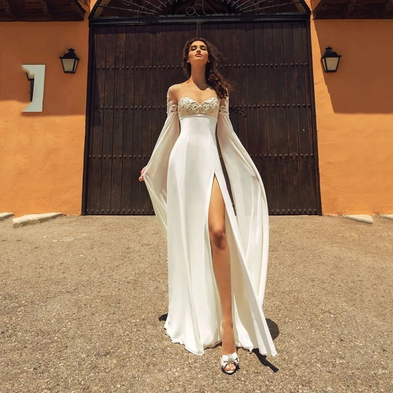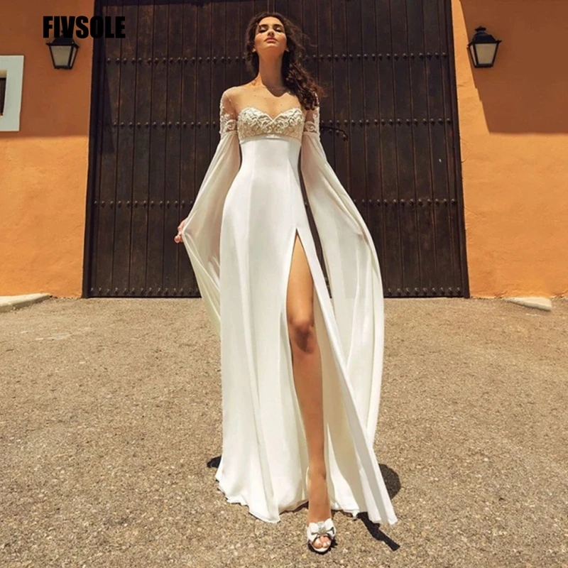 Шифоновое свадебное платье-трапеция Fivsole, с длинным рукавом, с бусинами и аппликацией, свадебные наряды, сексуальное платье с высоким Боковым Разрезом, милое платье