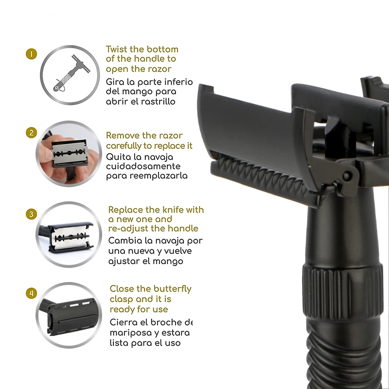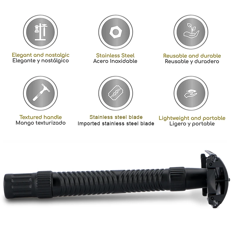 -Наши безопасные бритвы изготовлены из материалов высочайшего качества, что делает их прочными, безопасными и долговечными.