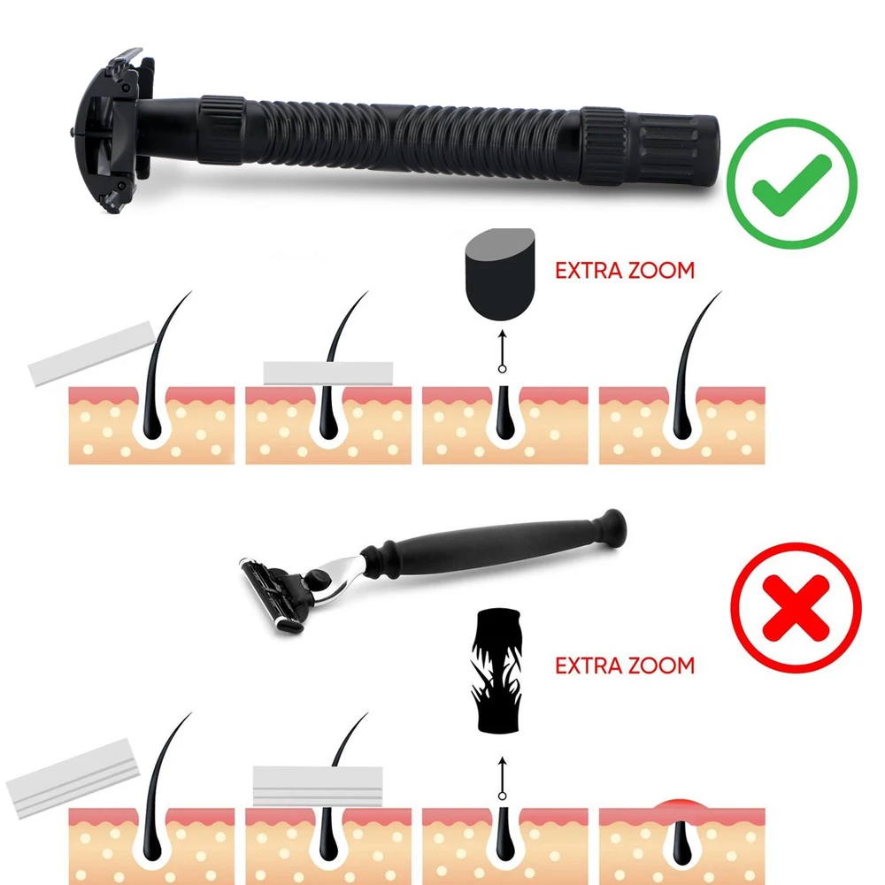 Меньше засорения за счет одного высококачественного одного безопасного лезвия бритвы, что приводит к более близкому бритью