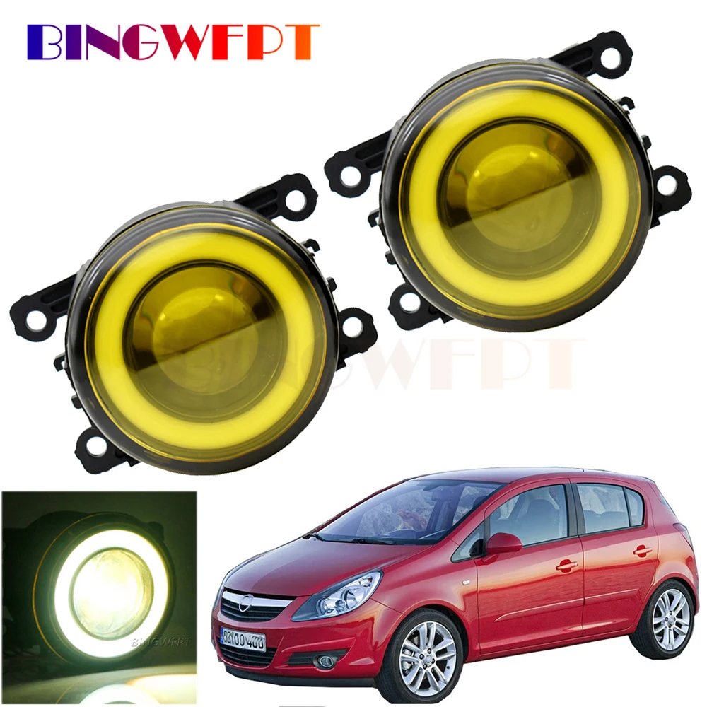 Передний бампер автомобиля, противотуманные фасветильник в сборе, светодиодные, ангельские глазки, дневные ходовые светильник ни DRL H11 для Opel Corsa D хэтчбек 2007-2015, 2 шт.