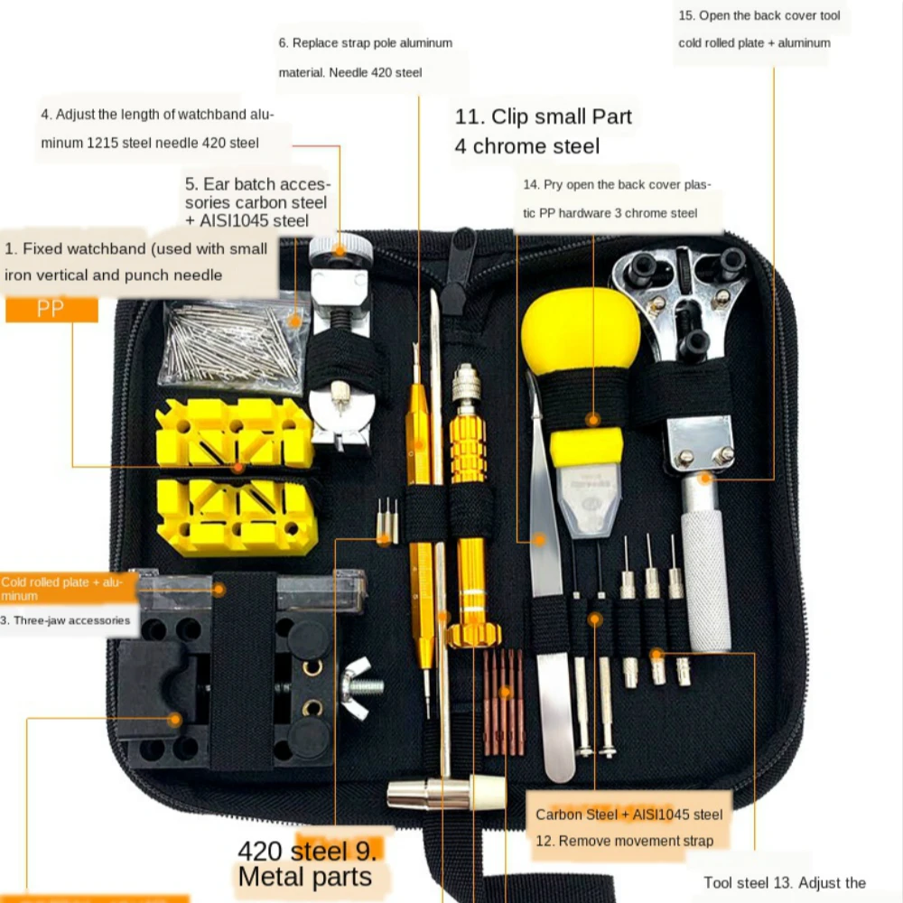 Набор инструментов для ремонта часов, съемник звеньев браслета часов 148 шт.компл., профессиональный набор инструментов для ремонта часов, сумка