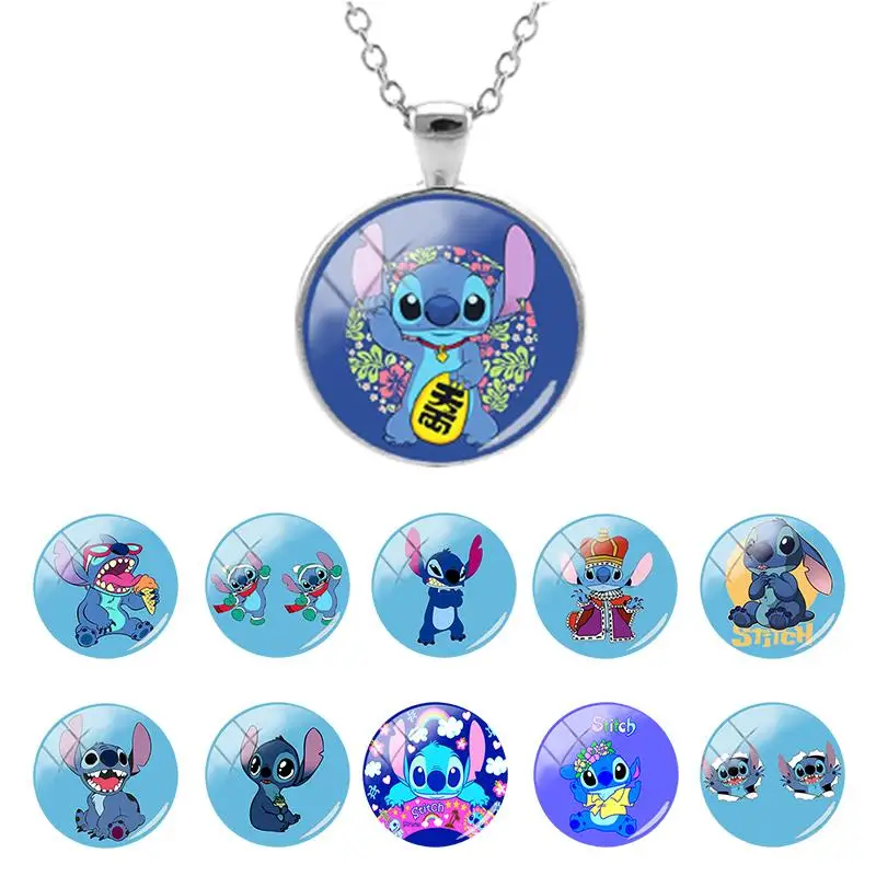 Disney Lilo & Stitch, милый стильный узор, 25 мм, стеклянный купол, ожерелье, цепочка, ожерелье для мальчиков, подарки, кабошон, ювелирное изделие DSN263Фотографии товара:
