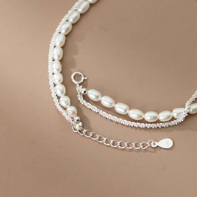 Браслет-цепочка женский из серебра 925 пробы с пресноводным жемчугом