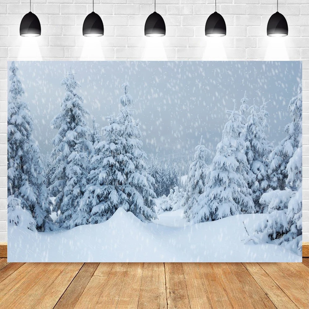 Фон для студийной фотосъемки с изображением зимней природы снежного леса дерева рождественской тематики
