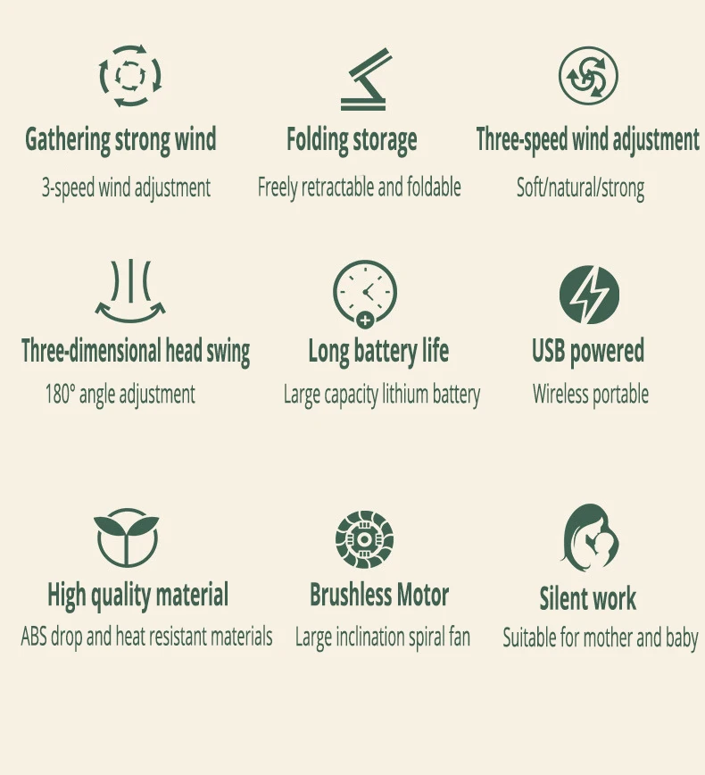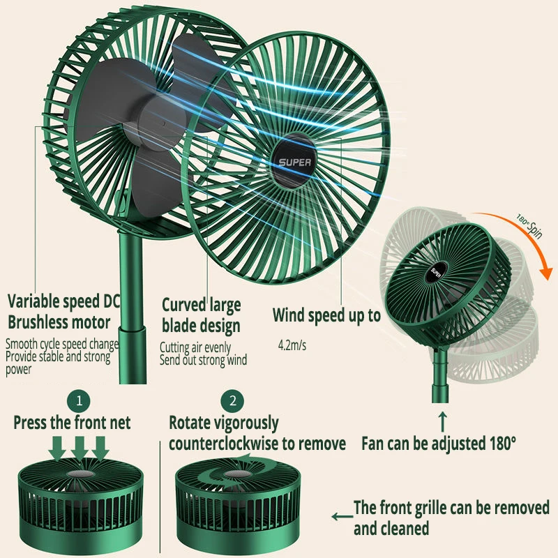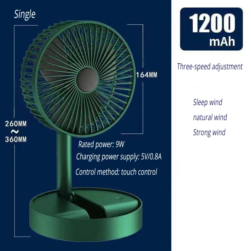 Складной телескопический Портативный USB-вентилятор, 1200 мАч