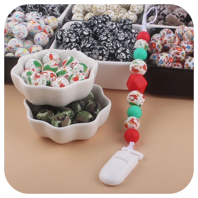 Детские цветные силиконовые бусины с леопардовым принтом, детский шар для прорезывания зубов, жемчужный силиконовый зажим для соски, бусины для прорезывания зубов