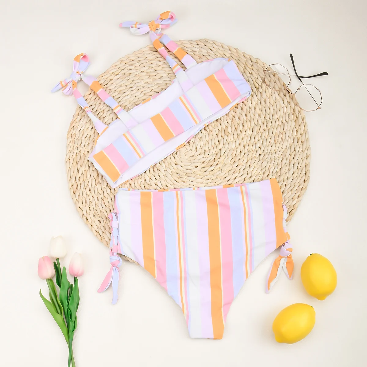 Женский купальный костюм, привлекательное бикини с высокой талией, комплект бикини в полоску, купальный костюм в стиле ретро, купальный костюм, пляжная одежда для плавания, 2021