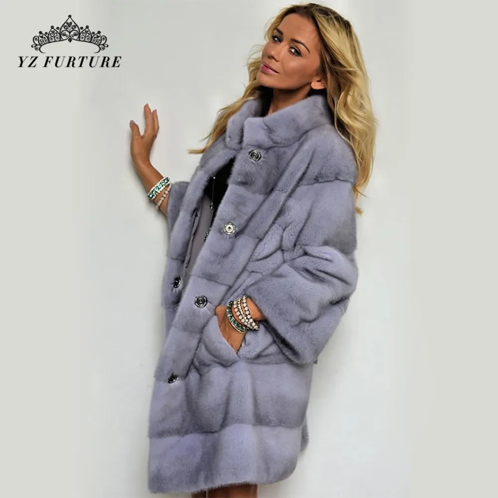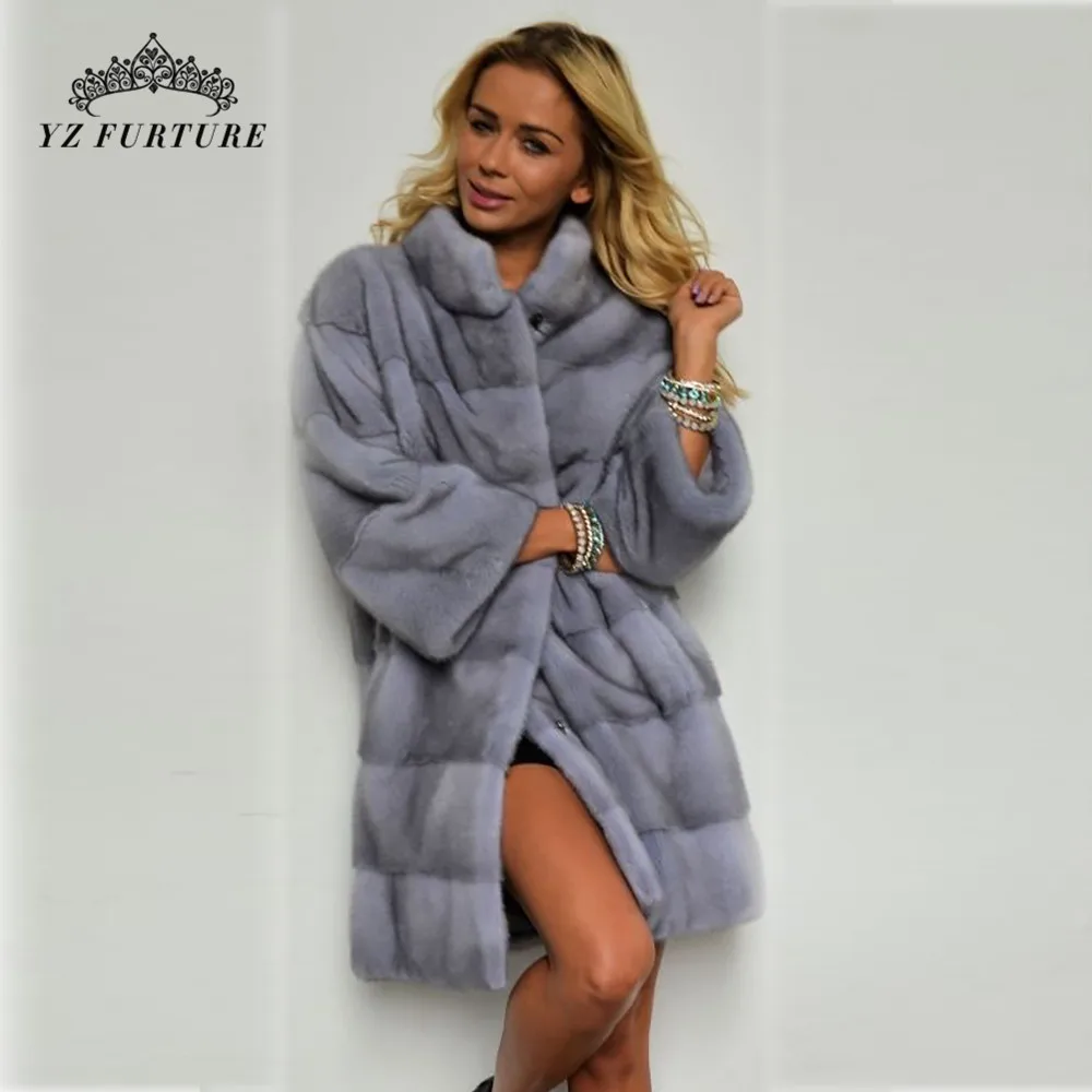 Новинка 2021, длинное пальто из натурального меха норки, куртки, роскошная текстура, натуральная Толстая теплая шуба из натурального меха норки с девятью рукавами, женская верхняя одежда