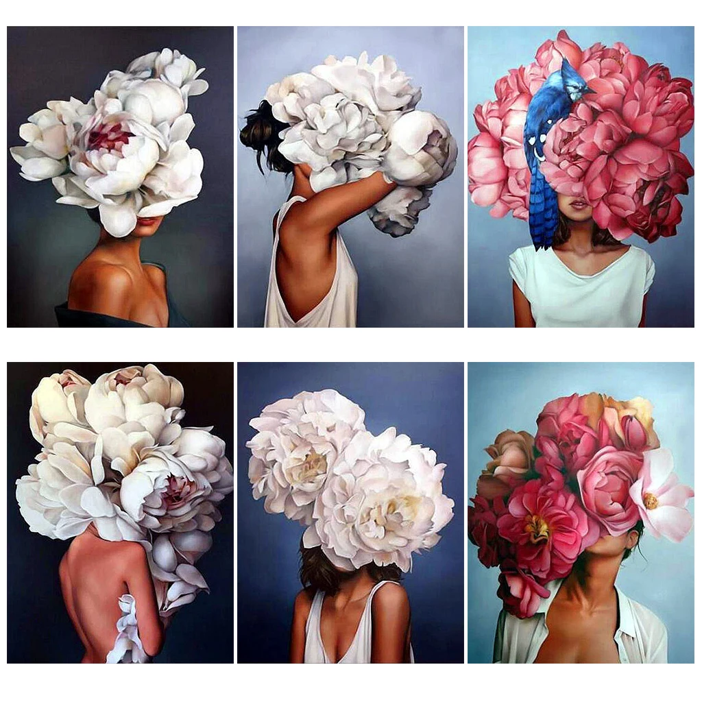 Алмазная вышивка с девочкой и цветком 5d, алмазная живопись, Набор для вышивки крестиком, рандомное украшение для дома, хобби ручной работы