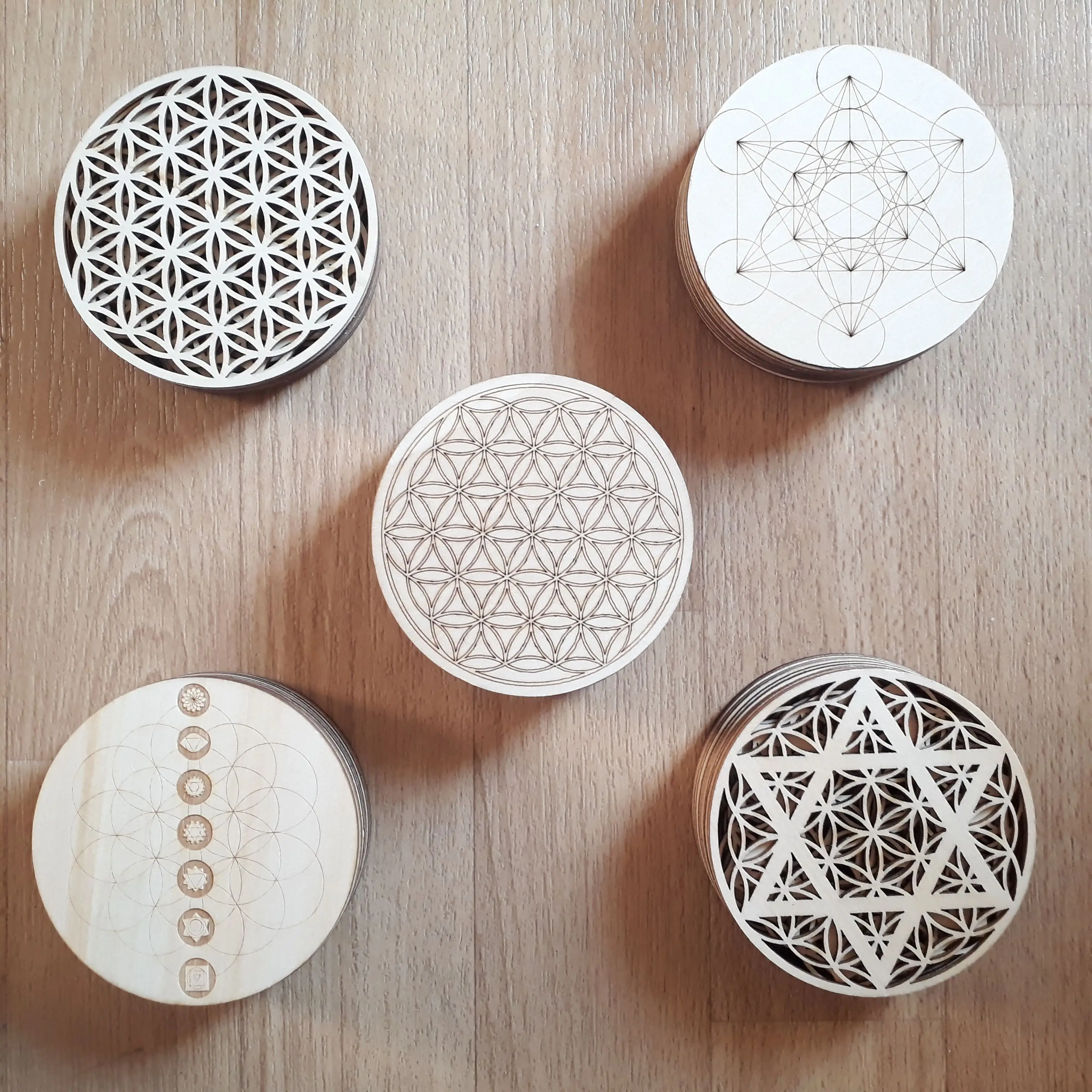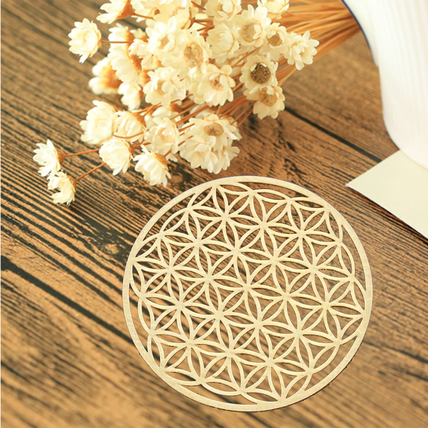10 шт. круги с круглыми краями, резные подставки, натуральный цветок чакры, символ жизни, дерево для камня, хрустальные искусственные камни, декор своими руками