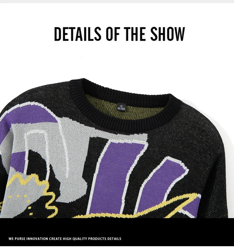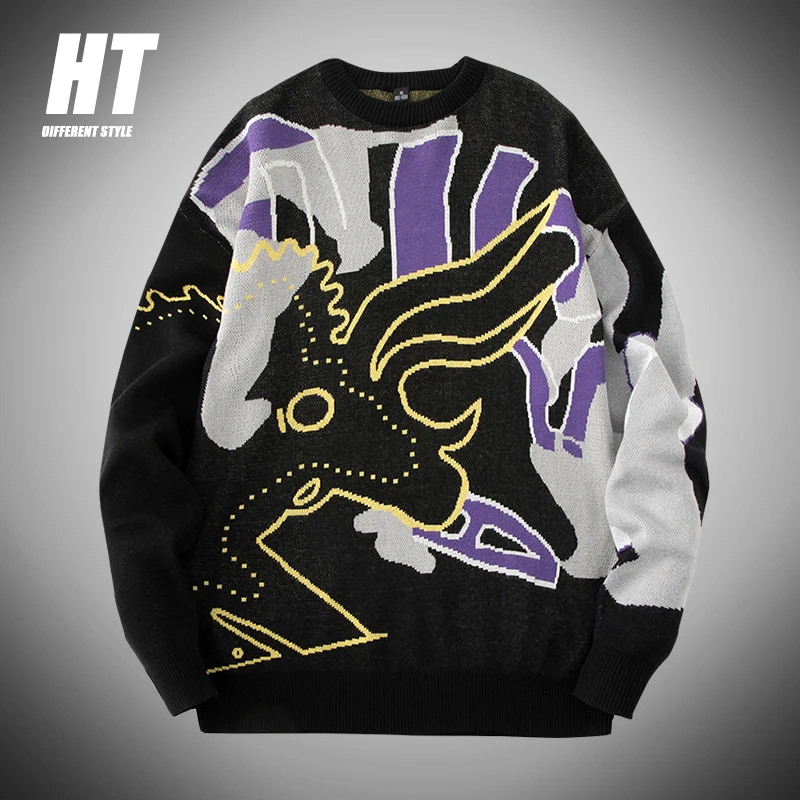 Хлопковый мужской свитер 2022 Harajuku аниме хип-хоп Уличная одежда Модный пуловер оверсайз с круглым вырезом динозавр повседневные мужские трикотажные свитера