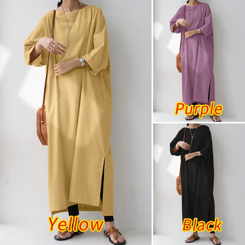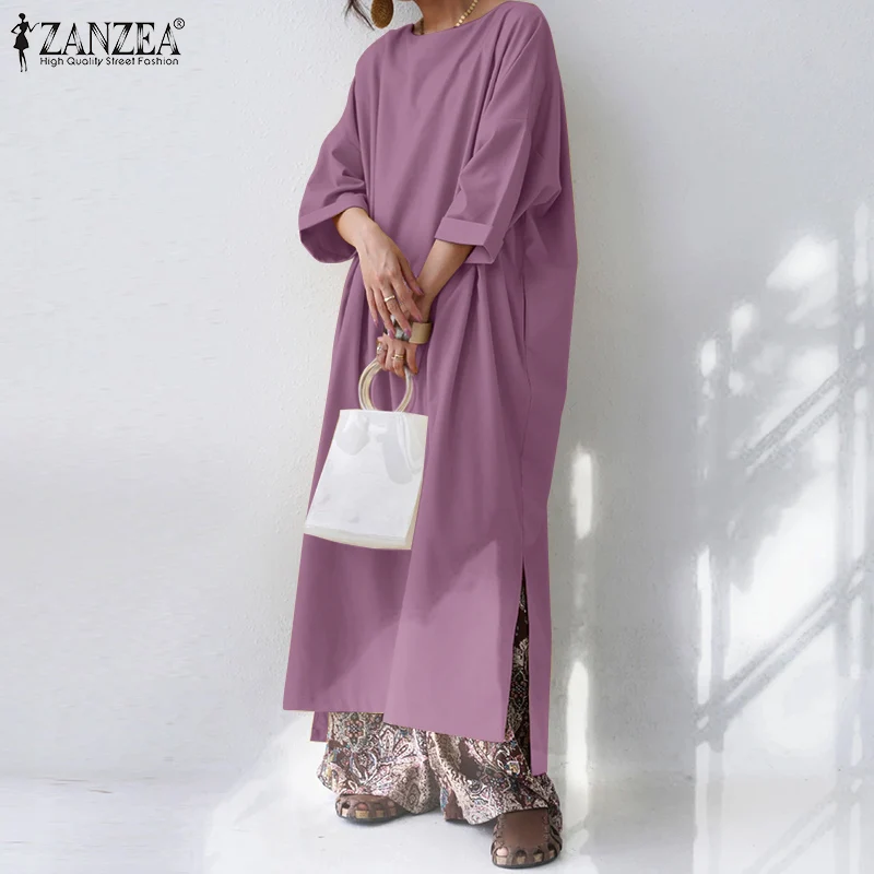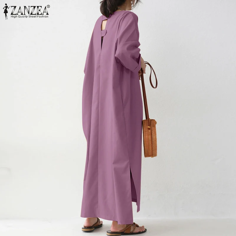 Платье ZANZEA женское осеннее оверсайз, однотонный длинный сарафан с длинным рукавом, повседневное свободное, с разрезом на подоле, мешковатое