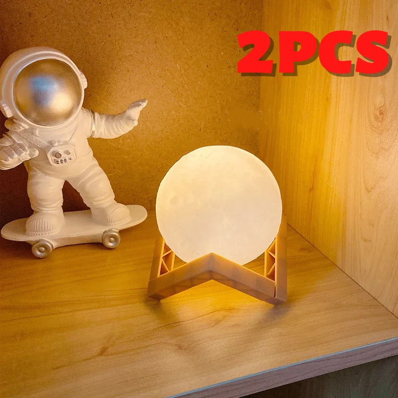 Светодиодный ночник с 3D рисунком Луны, 2 шт., лампа 8 см с подставкой, мягсветильник светильник, креативный декор для спальни, подарок для любимого ребенка, световой проектор