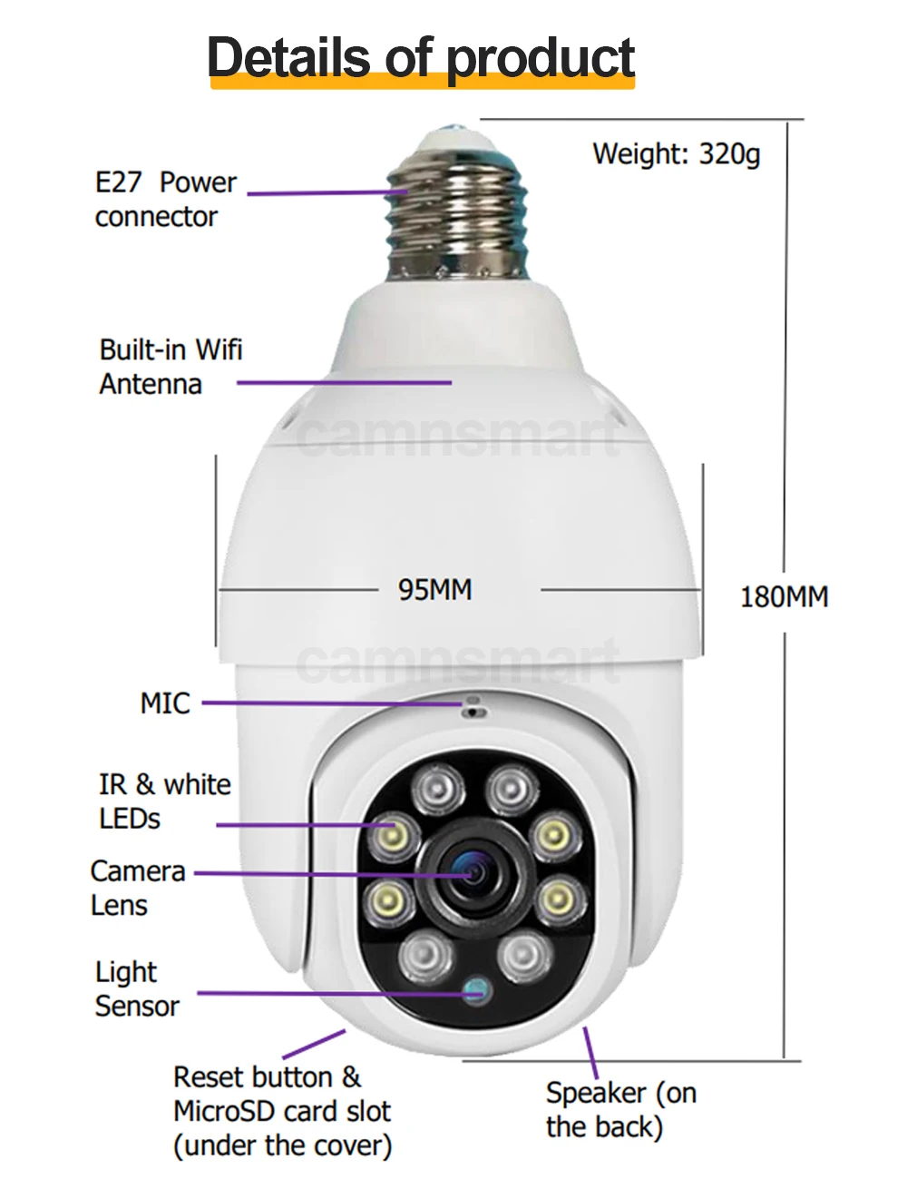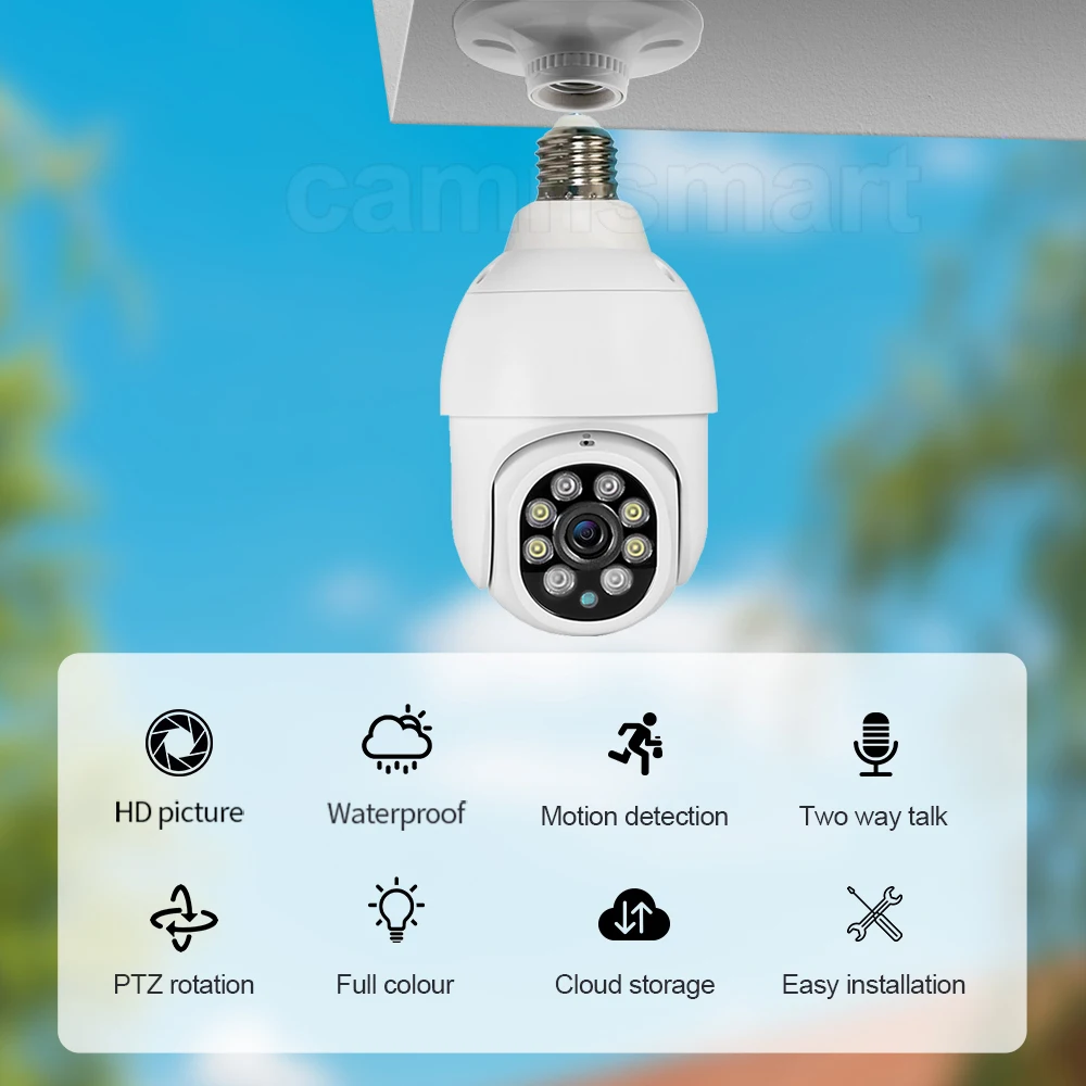 3 Мп E27 PTZ Wi-Fi камера наружная водонепроницаемая система видеонаблюдения наружная лампочка с гнездом купольная камера Ycc365plus управление