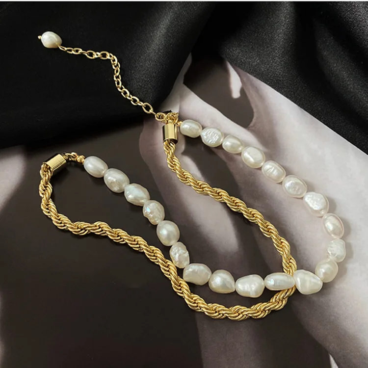 Модные высококлассные ювелирные изделия из нержавеющей стали 316L, подвески с натуральным жемчугом, толстая Поворотная цепочка, чокер, ожерелья, подвески для женщин