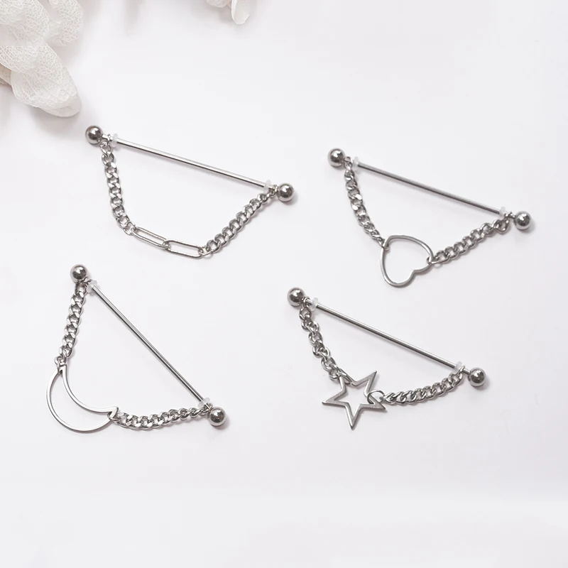 Серьга-штанга из нержавеющей стали со съемной цепью, ювелирное украшение для пирсинга мостика ушной раковины В индустриальном стиле с двумя отверстиями, 1 шт.