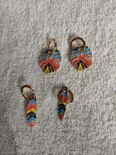Красивые Серьги хорошего мебель эмалированный и качество хорошее, один из самых уплотнения является немного более сложным, чтобы приспособиться к другой. Vuene в пакетике прозрачный bubble Tea пластик и в конверте, хорошо защищены. Пришли в Испанию в 3 недели, спасибо