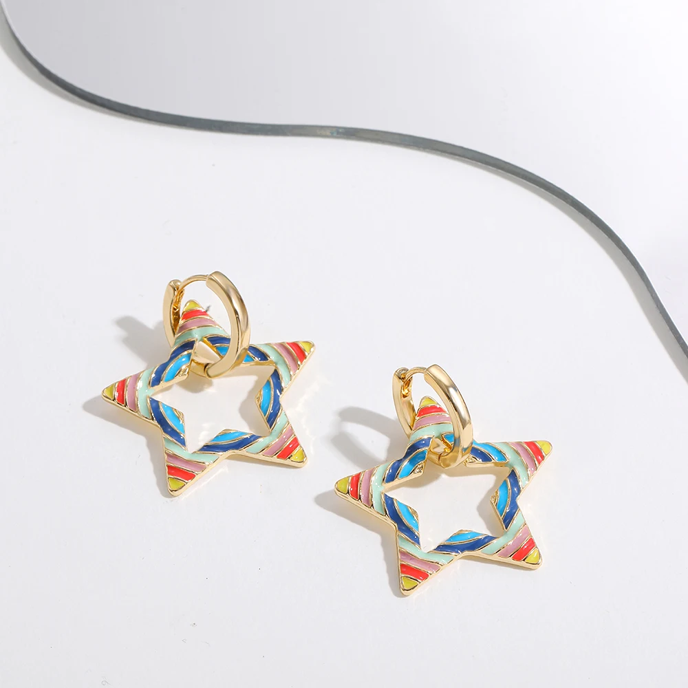 Эмалированные висячие серьги в форме Цветных Листьев и звезд для женщин, Винтажные серьги в стиле бохо с длинными перьями, эффектные Золотые круглые серьги, ювелирные изделия